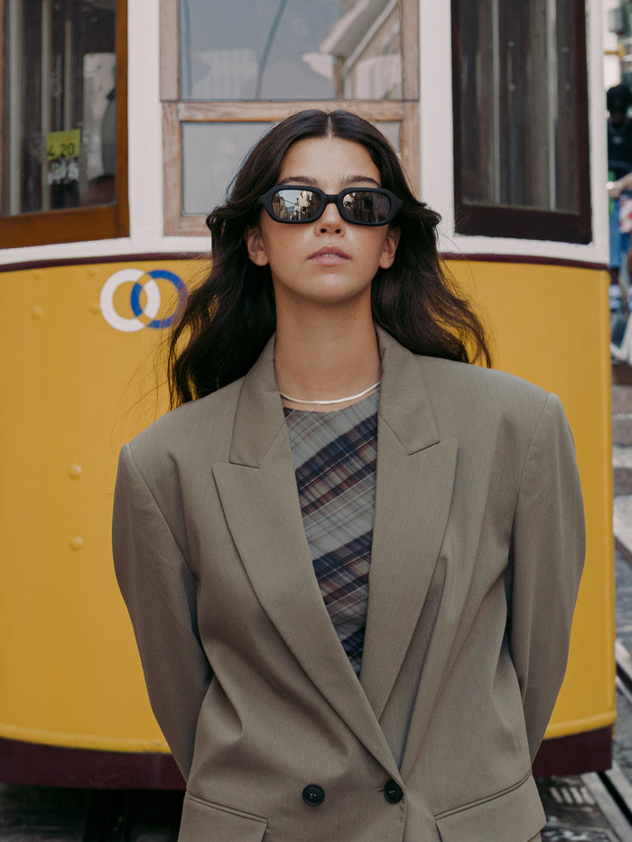 BENNETT tiene carácter. Destaca por su forma rectangular y su volumen contenido con líneas firmes y ligeramente redondeadas. Un modelo que transmite actitud y seguridad, con acabados que van desde tonos más neutros como el havana y el total black hasta el beige shiny smoke brown y bicolor green/pink.